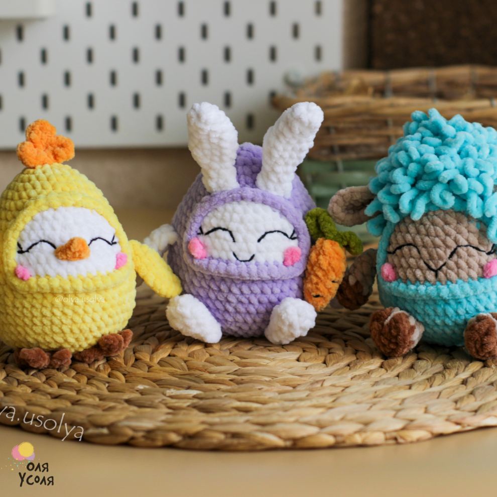 МК амигуруми для подарков, декора и ярмарок: цыпа, кролик и барашек в форме маленьких цветных яичек. Проект задуман к Пасхе, но малыши получились универсальными - их можно вязать не только к празднику, а в любое время года, когда хочется сделать что-то милое, быстрое и уютное.