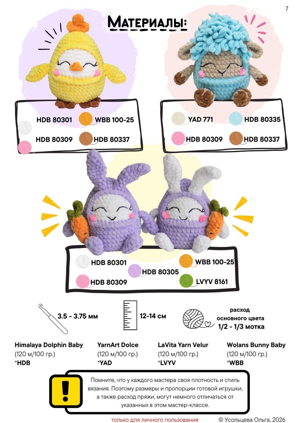 • 3 игрушки в одном мастер-классе: цыпа, кролик и барашек;