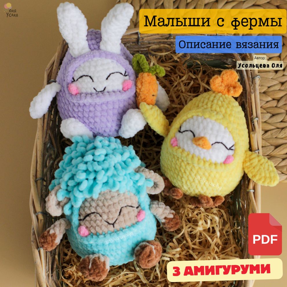 #малышисфермы #мастеркласс #амигуруми #вязаниекрючком #плюшеваяпряжа #пасха #пасхальныйдекор #цыпленок #кролик #барашек #игрушкакрючком #pdfмк #описаниевязания