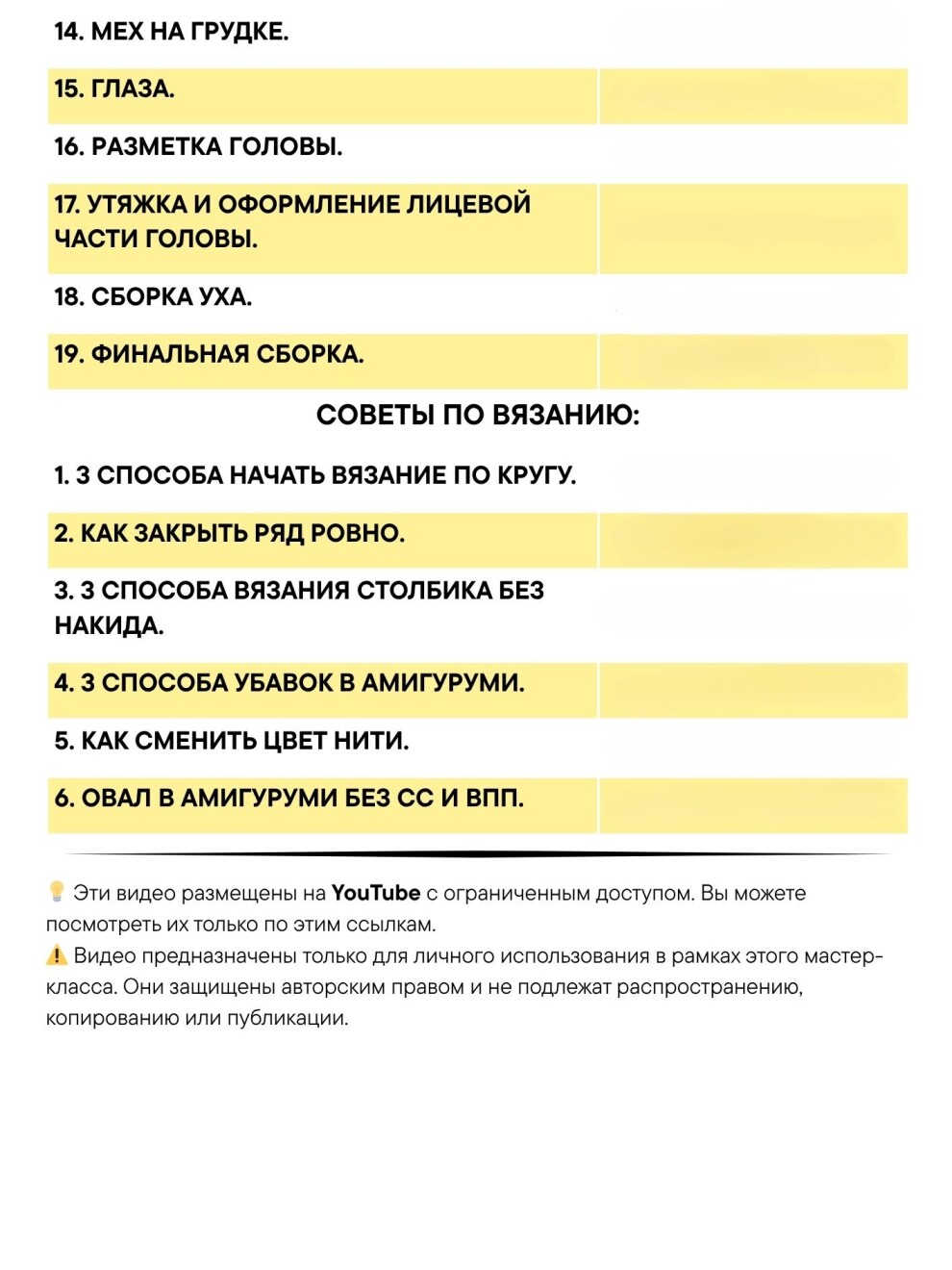 • 19 видео по ключевым шагам + 6 коротких видео-советов по вязанию